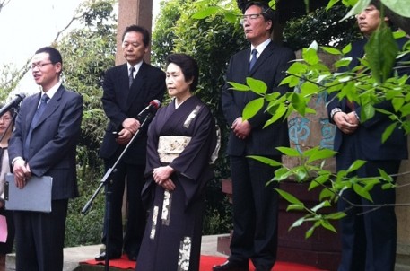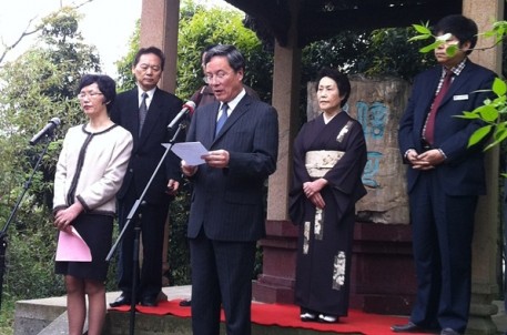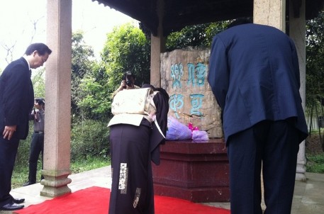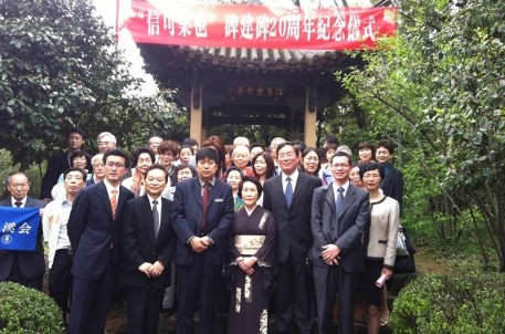 4月15日上午,日本天溪会会长南鹤溪女士率40位团员来到书法圣地兰亭举行“信可乐也”碑建碑20周年纪念仪式。市友协执行副会长、市外侨办主任谢振江,省友协办副主任吴晓东,市外侨办副主任、市友协秘书长盛伯均,兰亭景区副主任喻革良等人参加。仪式上,喻革良先生、南鹤溪女士和盛伯钧主任先后致辞。喻革良和南鹤溪作为“信可乐也”碑建碑二十年历程的直接见证者,更是深情回忆了兰亭和天溪会之间的友好往来及建碑历史,双方表示此碑已是兰亭不可或缺的一部分,是中日友好的见证和桥梁,希望书法天长地久,友谊天长地久。最后,南鹤溪女士向“信可乐也”碑献上鲜花,并深深三鞠躬。活动结束后,所有人员在碑亭前合影留念。