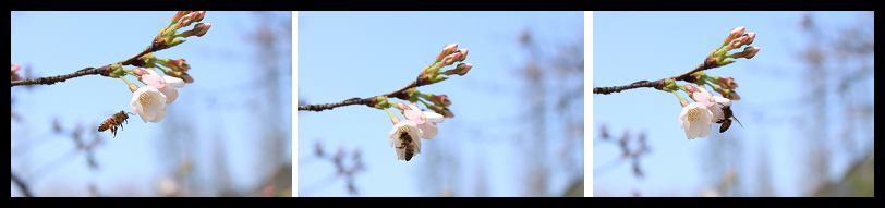 蜂儿助阵:淡淡的花香从林子里散发出来,立刻招来了不少蜜蜂,它们为樱花的成长助了