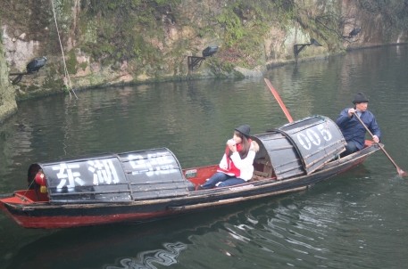 2012年2月15日上午浙江电台钱江频道《薇薇生活家——享旅游》栏目摄制组一行2人赴东湖景区取景拍摄专题节目。拍摄过程中,他们向工作人员要了一只盛有绍兴黄酒的粗茶碗,带上了绍兴特色的乌毡帽,坐上了乌篷船。在乌篷船的摇曳中感受着江南水乡绍兴独特的魅力。瞧!他们正享受其中呢!在乌篷船上咪着小酒,津津有味地听着杨帆舫中的越剧表演,女主持人更是情不自禁地为演员鼓起掌来。整个拍摄进行地非常顺利,节目组还将辗转于绍兴黄酒博物馆、鲁迅故里、沈园等地拍摄。届时该节目也将于2月23日晚22:35,在钱江频道数字9频道播出。