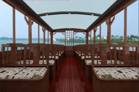 目前,我公司打造的新型画舫,外形为仿古、透明画舫,设计时尚、新颖,船顶突破了传统画舫古建式灰瓦顶棚,采用通透式玻璃顶,充分体现全方位观光效果,船内还配有高档红木桌椅、空调、液晶电视等设施。新型画舫将于近期开始打造,预计明年3月可下水试航,届时将为环河水上旅游接待工作锦上添花。
