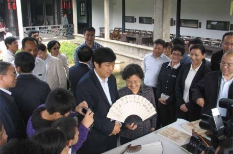 视察过程中,马书记对绍兴的历史文化,特别是兰亭的书法文化表现出浓厚兴趣,一直赞叹景区环境宜人,文化厚重。在王右军祠墨华亭内,景区特备文房四宝,由景区副主任、绍兴知名书法家喻革良现场挥毫创作了嵌有马馼女士姓名的书法扇,连同著作《心仪兰亭》、《喻革良书法作品集》一并赠送给了马书记。临走前,马书记亲切地感谢了景区的接待人员,并表示兰亭之行给她留下了非常深刻的印象。
