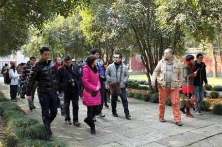 阳光微熹的12月17日上午,会稽山下大禹陵走来了张艺谋“御用编剧”王斌、冯小刚“金牌搭档”王刚、“埃及农民”、小巫婆、重庆美食、橡子、一口莲等数十名博客和微博网友。