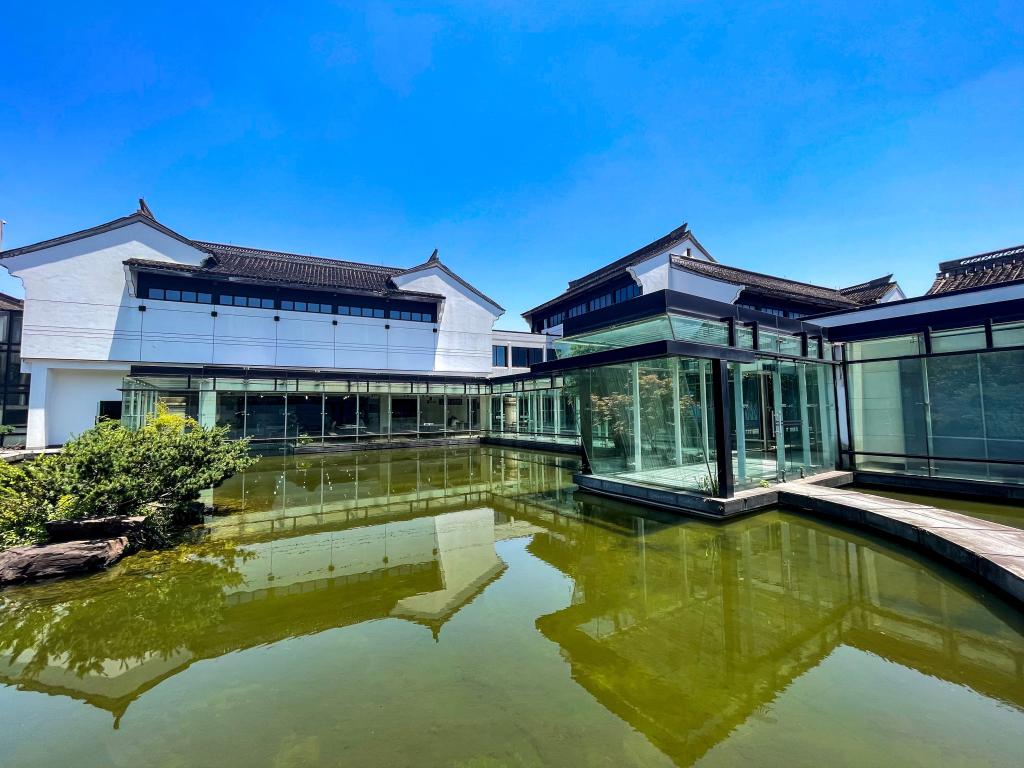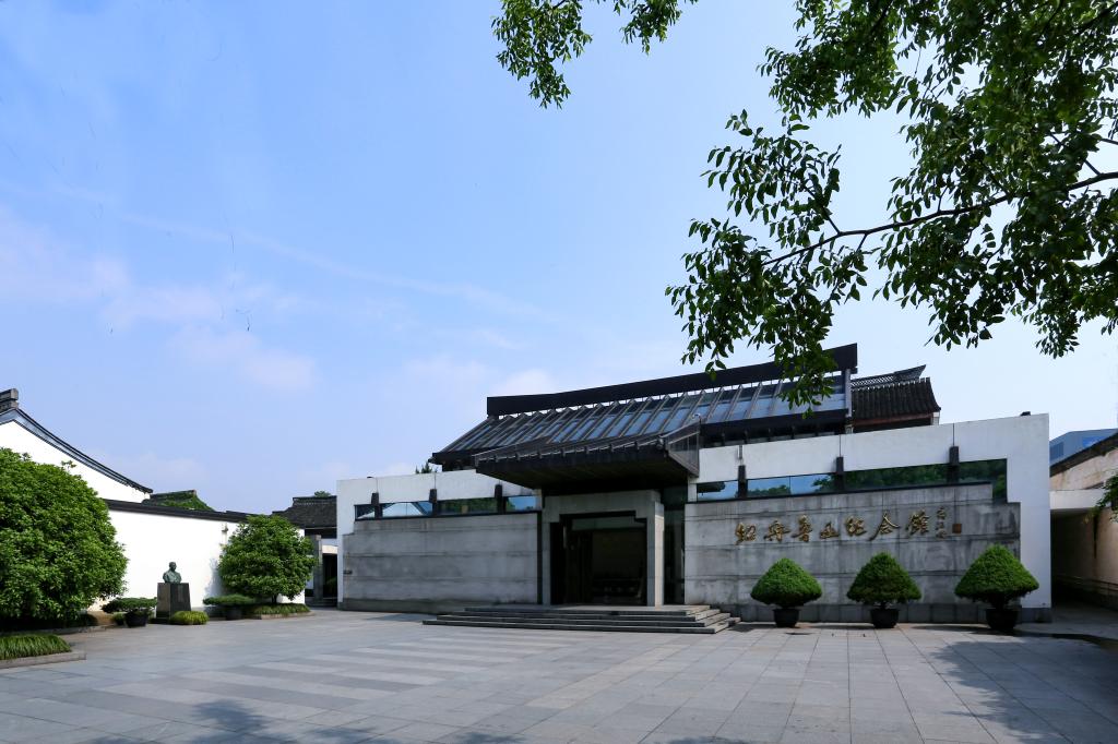 绍兴鲁迅纪念馆“鲁迅生平事迹陈列厅”本身是一座富有绍兴特色和时代特征的现代化展馆,造型简洁平和,朴素无华,充分体现了鲁迅精神的人文内涵。内部采用雕塑、不锈钢装饰墙面,以现代化展示手段加强了纪念馆建筑的文化内涵和艺术感染力。建筑与水景纵横交错,室内外空间相互渗透,构成了一个充满灵气的具有绍兴特色的现代展馆。