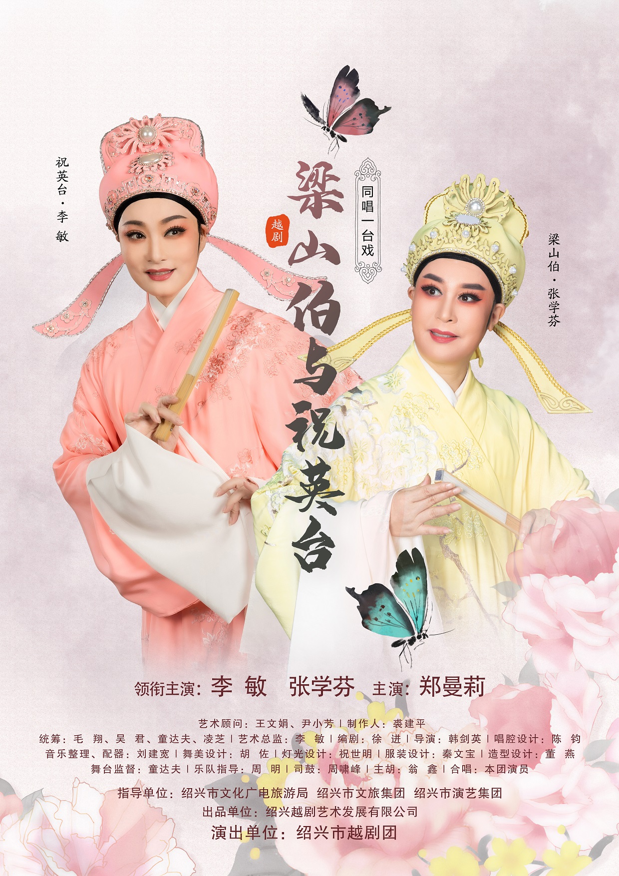 越剧《梁山伯与祝英台》是在传统经典名剧的基础上改编而成,它吸取了原《梁祝》的精华,在灯光、舞美、服装、道具等方面进行了重新设计制作,美轮美奂的舞台景观,著名作曲家何占豪、陈纲所作的同名小提琴协奏曲贯穿全剧,使表现手段与剧情更融合,让观众完全融入故事之中,切身感受“梁祝”的浪漫爱情,尽情享受越剧经典的魅力。作为首部尹王版《梁祝》的整本大戏,由梅花奖得主、国家一级演员李敏饰演祝英台,国家一级演员张学芬饰演梁山伯。