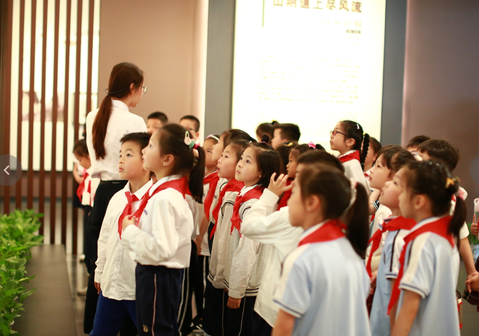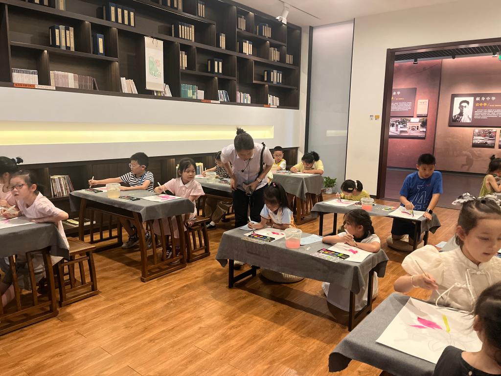 绍兴名人馆对绍兴五千年历史中的名人文化进行全面梳理,展现了绍兴名人文化的核心内容。绍兴名人馆推出的主题为“巧手共绘莲花开 古越名人代代传”研学游,寓教于乐,在讲解老师带领下,循着手绘研学小报地图开展研学,在深入了解150多位绍兴名人和观看党史动漫专题片后,在宣纸上描摹自己喜爱的莲花图样,再将其粘在卷轴之上。通过参观和动手多种方式,加深对绍兴历史上著名人物的了解和认识,开阔眼界,丰富课外知识,提高爱国爱乡情操。