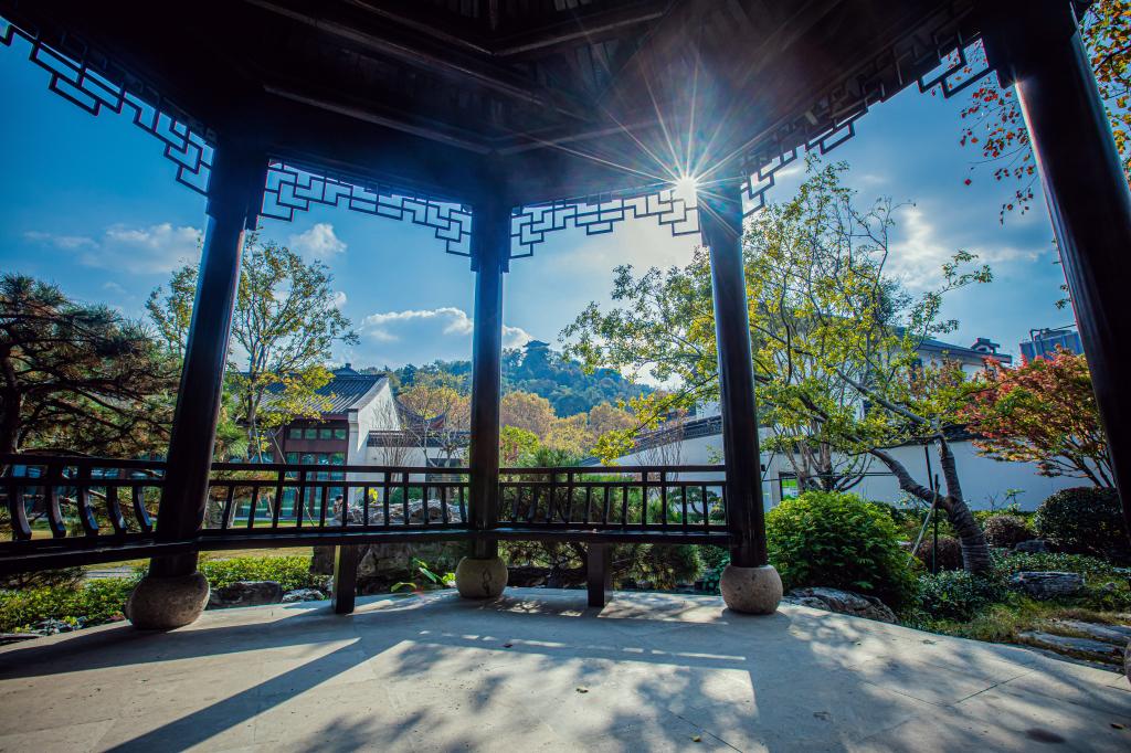 绍兴饭店是一家中式园林度假酒店,青砖白墙、古韵回廊、亭台楼阁、小桥流水、花木扶疏,入眼皆景。