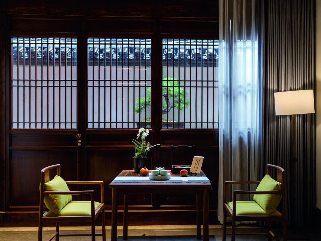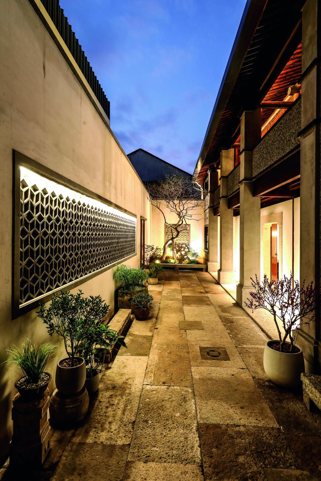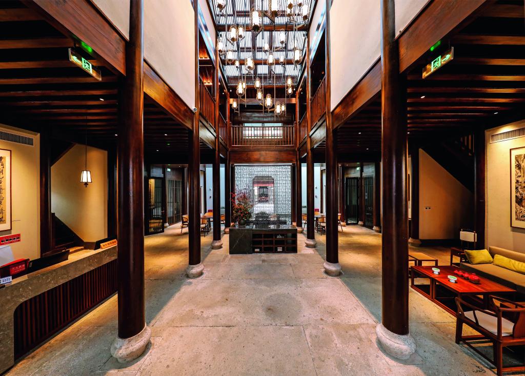 青藤别苑位于绍兴市越城区后观巷35号(徐渭艺术馆西侧),是具有徐渭文化特色的主题酒店。整体建筑面积780平方米,分上下两层,主要经营住宿服务。酒店设有八个不同类型的房间,套房主题分别为渡海、眠松、行吟、行舟、对弈、扶醉、渔者、菊石、观棋。入住其间,随处可见文人笔下绍兴人文风物的灵秀。酒店还采用 “夺得千峰翠色来” 的越窑青色为局部墙体上色,营造出温馨放松的居住环境。客房古朴清雅,干练的空间线条、高级的材质以及艺术化的装饰,都以低调的设计展现着空间的本质,让宾客在休憩之余能感受到古今韵味的自然连接,笔墨流转间彰显台门礼序,简笔勾勒中续写江南古韵。