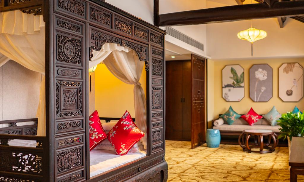 酒店位于鲁迅故里西侧出口处,枕河而立,酒店房间融入鲁迅文化,拥有大床房、雕花大床房、双床房、家庭房、豪华套房等多种房型。
