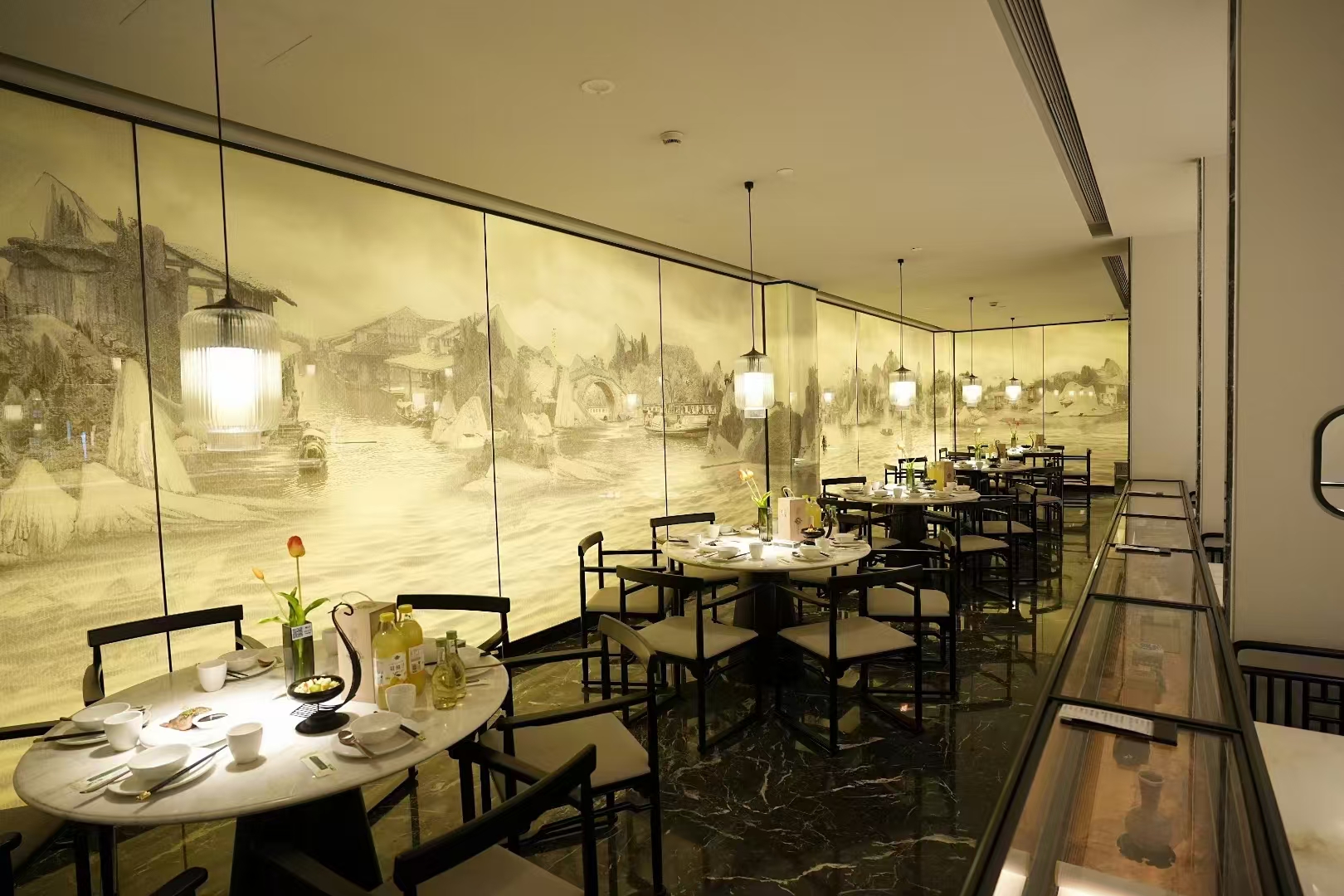 绿茶餐厅(绍兴府山店)位于府山西路360号,是绿茶餐厅在绍兴开设的第一家、新中式装修风格的餐厅。餐厅致力于让每位顾客在用餐的同时领略美食与新中式美学风景。门店设有大厅散桌和十多个包厢,包厢以绍兴地标命名,如八字桥街、题扇桥、都泗门、迎恩门等,既能承接2-6人的消费,也能满足8-20人的聚会消费需求。
