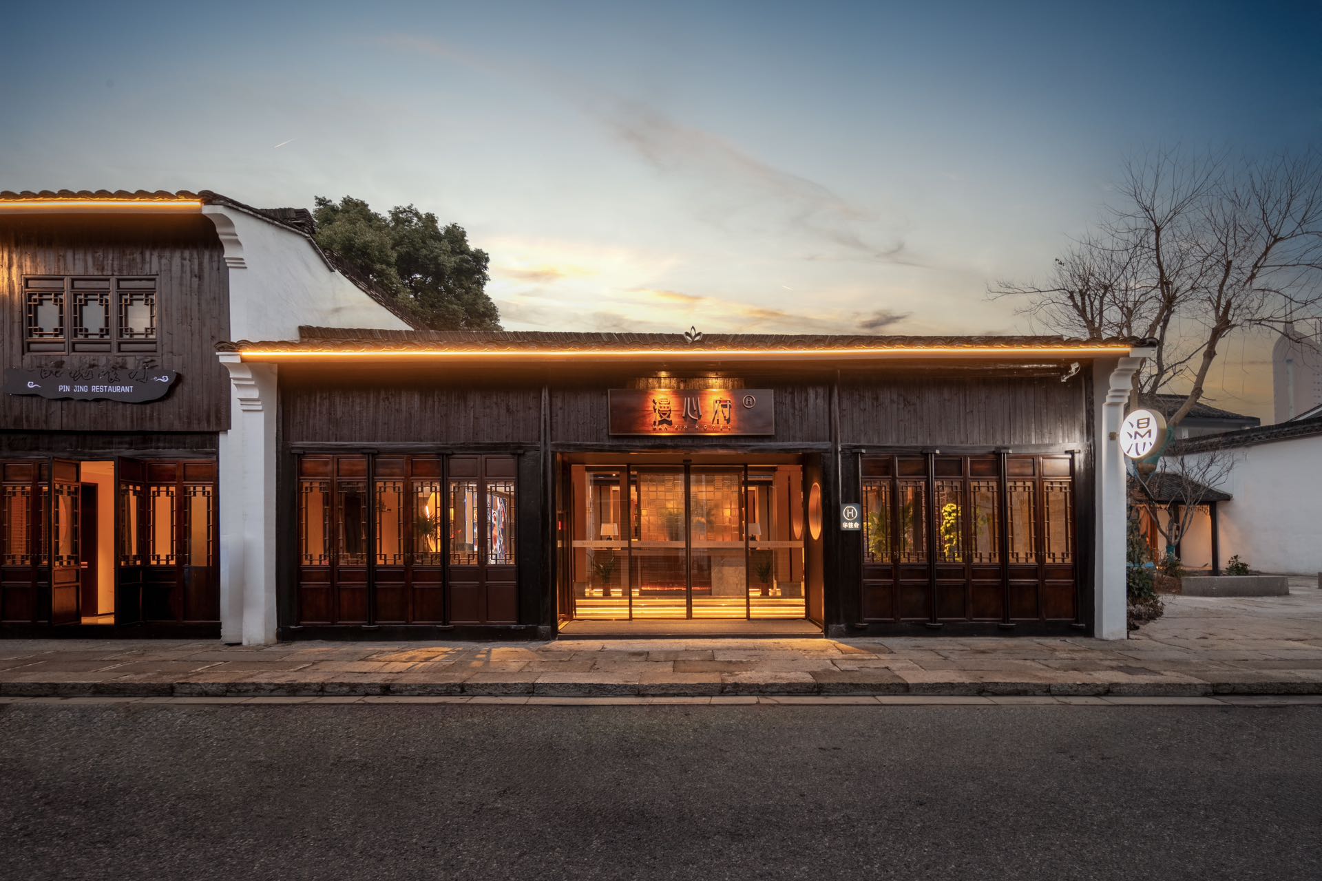 漫心府位于上大路412号,是以国风院落为基调,以竹为载体,采用雕花、花卉、篆刻等元素串联整个空间的酒店。漫心府毗邻王阳明故居、书圣故里、黄酒博物馆、王羲之书法圣地、仓桥直街、鲁迅故里等众多名人故居,身处粉墙黛瓦的建筑环绕之中,坐落于著名的绍兴历史文化名城,拥有独门别院的优美环境。酒店通过语、观、听、心、品的独特体验,让宾客感悟圣人之道。这里共有31间风格迥异的客房,古老的木质建筑架构和纹理清晰的木质家具仿佛在诉说着过往的故事。