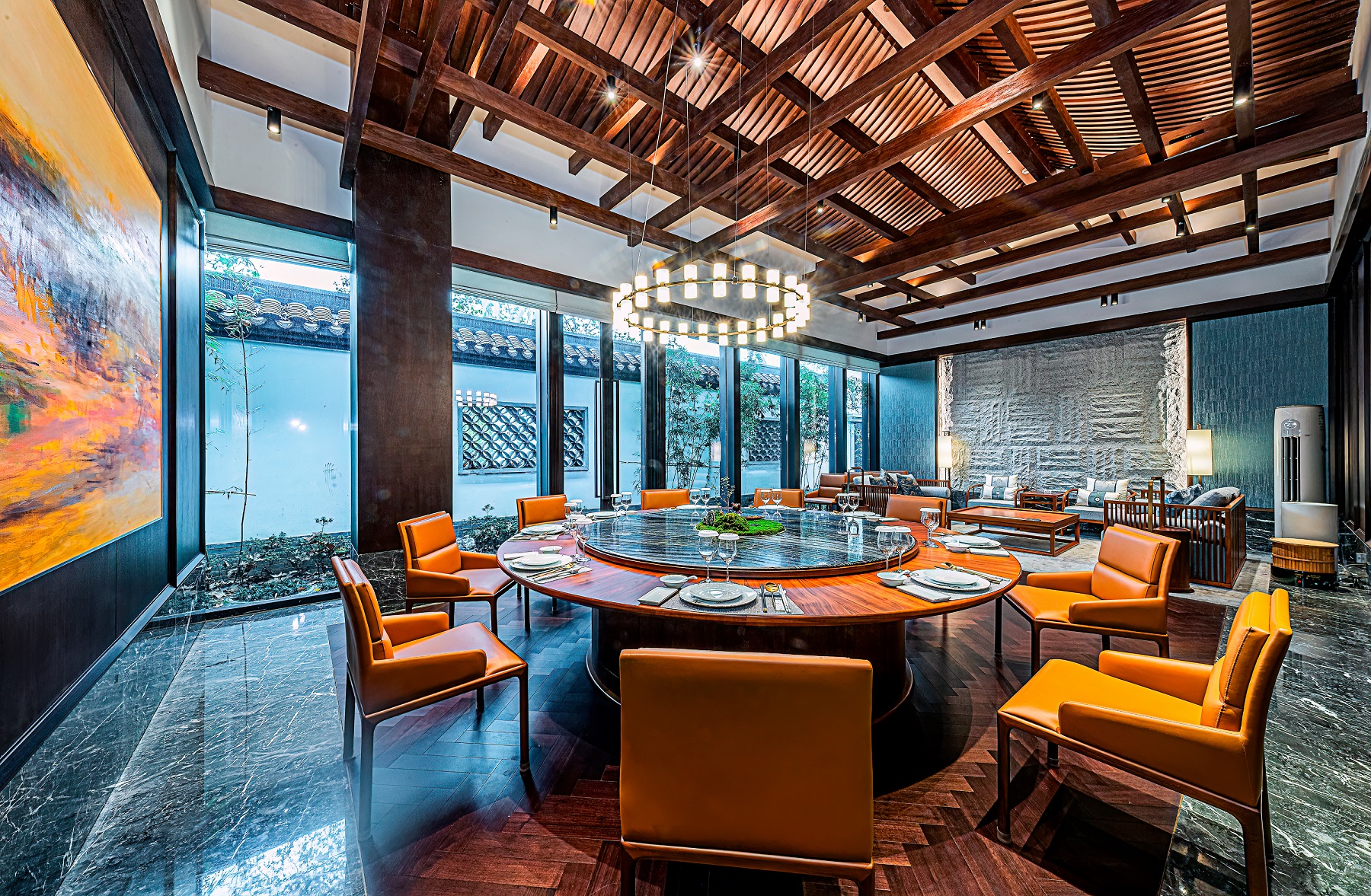 绍兴饭店·府山隐餐厅位于府山脚下,与绍兴饭店大堂遥相呼应,是以粤菜的精致烹饪方式与越菜的咸鲜风味结合为特色的粤菜创新菜,将越菜的“意”和粤菜的“形”巧妙融合,回味无穷。餐厅建筑风貌融入府山山水意境,环境高雅。餐厅拥有五个主题包厢及一个多功能宴会厅,是商务招待、喜宴活动、沙龙年会、亲友聚餐的首选之地。同时,结合节假日,餐厅还有适合游客及家庭聚餐的特色菜肴、特色下午茶等餐饮服务,让您在府山隐品味美食,享受美好。