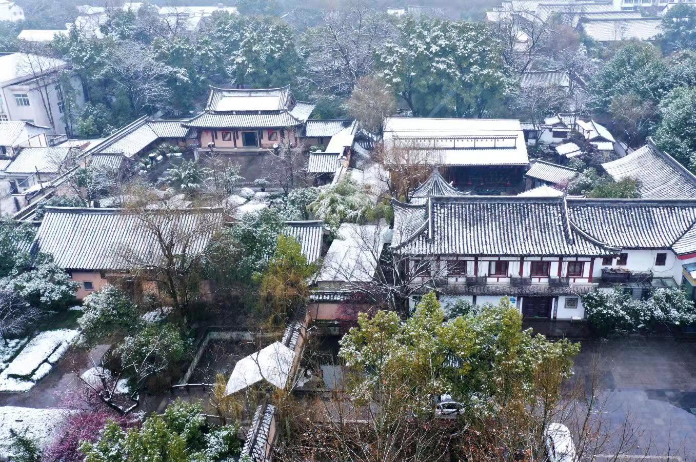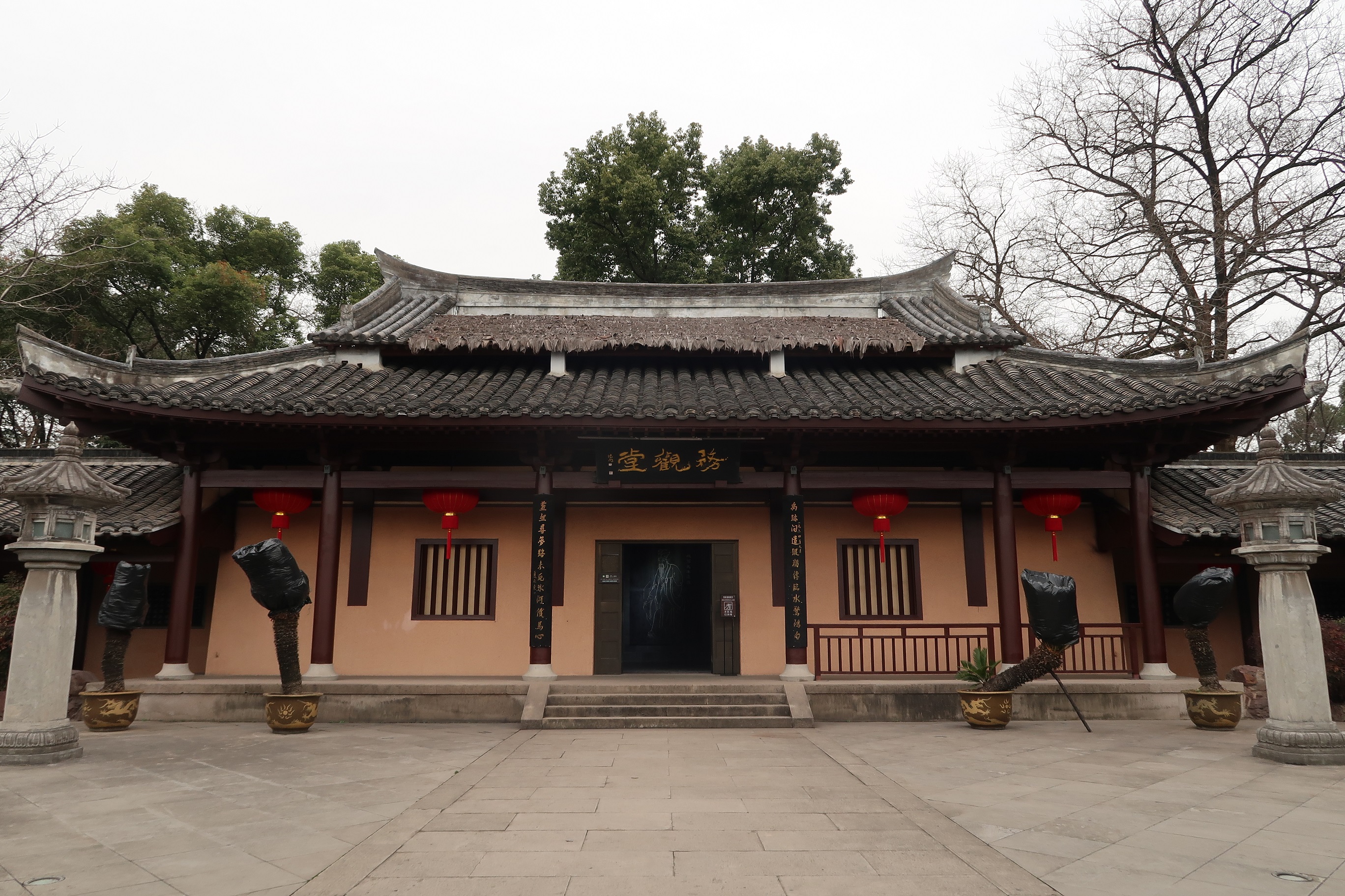 孤鹤轩亦称“孤鹤哀鸣”处,是陆放翁的自喻。伟大爱国诗人陆游因南宋朝廷昏庸,壮志难以实现,发出孤鹤的哀鸣,以孤鹤自喻,隐喻诗人在人生中痛失伴侣,事业上报国无门、爱民有罪、屡遭贬职的坎坷一生。亭内有“亭池”遗址,1985年考古发掘时在此发现唐亭阁和明代的假山、鱼池遗址。“孤鹤轩”匾额分为内外两块,内匾额由著名书画家、文物鉴定家谢稚柳题写,亭外由大康敬书