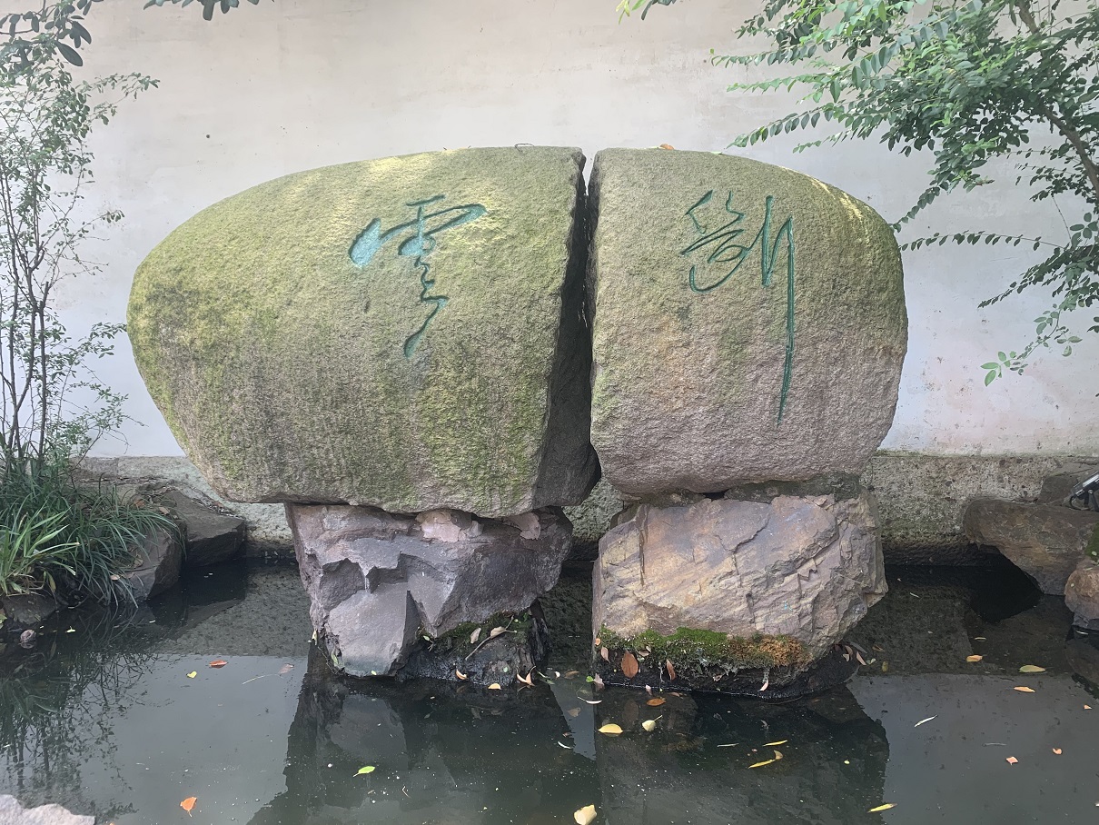 断云石在沈园入口处,陆游曾写过诗句“断云幽梦事茫茫”,“断云”谐音“断缘”,此石中间断开,但依依不愿分离,向人们诉说陆游和唐琬的爱情悲剧,点明沈园的主题