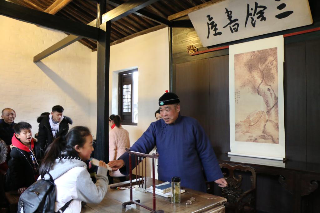 三味书屋旁边的“三余书屋”内设有一个旧时的私塾演示活动,游客可以参与其中,与老先生一起念念“三字经”,对对课,亲身感受鲁迅当年读书的意境和绍兴旧时的私塾文化。活动时间:上午 9:30——10::00 下午 14:30——15:0010:30——11:00 15:30——16:00活动地点:鲁迅故里三余书屋