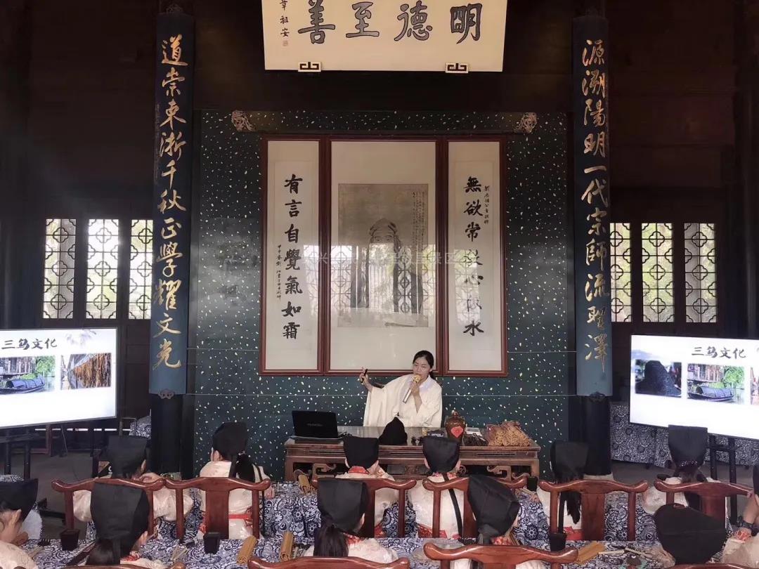 【活动内容】“蕺山讲学”作为景区特色研学游活动,让学生能身临其境地体验到绍兴传统文化,同时还能提升学生的创新精神和实践能力,丰富他们的学习经历和生活体验;活动包括穿汉服、敬先贤、读《弟子规》、蕺山书院名人汇、习“蕺”写“蕺”、绍兴传统文化等。学生们通过看(看实物)、听(听故事)、动(动手参与),跟着老师一起了解绍兴传统文化,感受中华民族传统文化的魅力